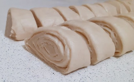 İlk önce geniş bir kabın içerisine sütümüzü ve suyumuzu koyalım. Daha sonra toz şeker ve toz mayamızı ekleyip güzelce karıştıralım. Bu şekilde 5 dakika kadar mayamızın hazırlanmasını bekleyelim. Mayamız tam olarak oturduğu zaman içerisine sıvı yağımızı, yumurta akını ve tuzumuzu ekleyip karıştıralım. Unumuzu yavaş yavaş ekleyerek yumuşak ve ele yapışmayacak hale gelene kadar yoğuralım. Hamurumuz istediğimiz kıvama geldiğinde üzerini örtüp oda sıcaklığında 1 saat kadar bekleyelim.