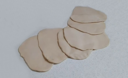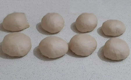 Mayaladığımız hamurdan mandalina büyüklüğünde parçalar kopartalım. Hamurlarımızı oklava kullanarak servis tabağı büyüklüğünde olacak şekilde açalım. Bütün hamurlarımızı bu şekilde yaptıktan sonra hamurlarımıza şekil vermeye başlayalım.