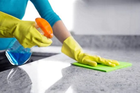 Tezgâh temizliği mermer tezgâhlara göre daha kolay olacaktır. Tezgâhımızın üzerine bulaşık deterjanını çok olmayacak şekilde her tarafına dökelim. Islak bir bezle bastırmadan ve çok köpürmesine müsaade etmeden bastırarak temizliğimize başlayalım. Kaba pisliği bu şekilde aldıktan sonra tezgâhımızın üzerine bir kap ile temiz su dökerek kâğıt havlu ile temizleyerek lamine tezgâh temizliğimizi bitirelim.