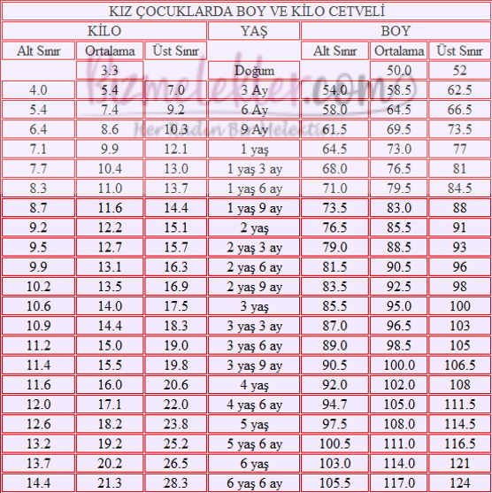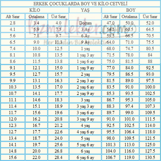 Kaynak Prof. Dr. Olcay Neyzi’nin Türk Çocuklarında Vücut Ağırlığı, Boy Uzunluğu, Baş Çevresi ve Vücut Kitle İndeksi Referans Değerlerinden yararlanılmıştır.