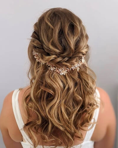 Havalı bir görünüm yaratsa da düğün saç modeli seçilirken o havayı korumak gerekecektir. Saçları yarım toplayarak arkada kalan saçları normal örgü ya da kılçık örgüyle şekillendirmek bu havayı korumaya yardımcı olacaktır. Ancak örgü model düğün saç modeli olarak seçiliyorsa örgülerin belli olmasını da sağlamak gerekecektir.